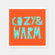 Den här ljusa grafiken har frasen "Mysigt och Varm" i ljusblå tillsammans med snöflingor. | Blanckslat | 141048D