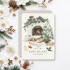 Detta varma och mysiga julkort med helgdag har en kamera som är dekorerad med grönt, hus och ljus, Julgran med presenter och en sovande hund. På baksidan visas fotot på en ljusbeige/beigefärgad bakgrund med vit snö mönster. Anpassa den efter dina behov. Du hittar matchande produkter i min butik.