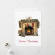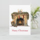 Ett platt helgdag med en varm och mysigt illustration med en gammaldags kamera. Det hänger med försiktighet. Garland hänger över manteln. En varm eldbrand i hjärtat.