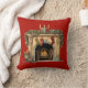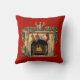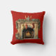 En kudde med en varm och mysigt illustration med en gammaldags kamrat. Det hänger med försiktighet. Garland hänger över manteln. En varm eldbrand i hjärtat.