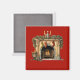 Magnet med en varm och mysigt illustration med en gammaldags kamrat. Det hänger med försiktighet. Garland hänger över manteln. En varm eldbrand i hjärtat.