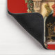 Mousepad med en varm och mysigt illustration med en gammaldags kamrat. Det hänger med försiktighet. Garland hänger över manteln. En varm eldbrand i hjärtat.
