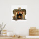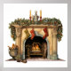 En poster med en varm och mysigt illustration med en gammaldags kamrat. Det hänger med försiktighet. Garland hänger över manteln. En varm eldbrand i hjärtat.