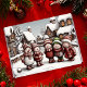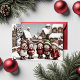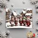 Dessa små snögubbar, som sitter ihop i sina vinterhattar och halsdukar, ger liv åt säsongens lekande anda. I en kittlig by som är täckt av snö samlas dessa heliga snö-kompisar för att sprida värme och glädje. Deras rosenskinka, mysiga halsdukar och luddiga hattar ger ut den lekande magin av vintertid. Med den mjuka glöden från husen bakom sig utstrålar detta kort en känsla av tillsammans, skratt och minnen av snönära äventyr med vänner. Perfekt för alla som omhuldar julhelgens enkla glädjeämnen!