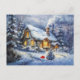 Den magiska vinterscenen med en stuga täckt av snö, försedd med ett glansande Julgran, vackert utgiven i oljemålning stil.