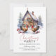 Mysiga inbjudan till Vintergårdspartiet Chickens Julfest - med en rustik vattenfärgsgård som alla är utblottade för helgdagarna och kycklingarna.