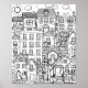 Svartvit design för att lätta på färgen, en mysigt stad med stora hus och söta katter, hitta och färg alla katter som gömmer i den här staden.