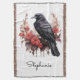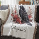 Set the tone for a dark academia inspired retreat with this personalized woven throw blanket. This moody design features a striking black raven perched among vintage watercolor roses rendered in a palette of muted crimson and charcoal grey. It is a thoughtful way to celebrate a special milestone or a unique statement gift for a nature lover.