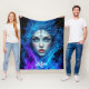Add a supernatural touch to me time with this fleece blanket, which features an otherworldly female with ice blue eyes and delicate floral tattoos on her face, artistically emerging from blue and purple flames. Personalize with a name!