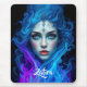 Add a supernatural touch to your workspace with this mousepad, which features an otherworldly female with ice blue eyes and delicate floral tattoos on her face, artistically emerging from blue and purple flames. Personalize with a name!