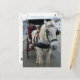 En vit häst som är fäst vid en gammal vagn visas i detta BuffaloWorks Mystic Horse-foto. Detta hästfotografi finns inte bara på detta vykort, utan även på många andra produkter. Vi har också samlingar av bilder av fyrar, flygplan och andra bilder av livet.