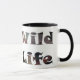 Starta din morgon från högerna med en hett kopp kaffe i en Mystic Howling Varg silhouette mugg. Visa upp vilden med den här färgstarka bakgrunden med fullt måne för att göra din dag ljusare. På andra sidan mugg visas "Vilda djur". Val av färg och storlek.