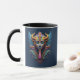 Make a bold statement with this stunning psychedelic deity mask design. Featuring sweeping golden horns, great feathered wings, and an ornately decorated face in rich teal, cobalt, violet and gold, this eye-catching print is packed with intricate detail that rewards a closer look every time.