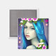 Söt dam med vitt och lila blommor i sitt blå hår. Vacker blått ögon med blek skal sagart fantasykonst.