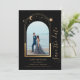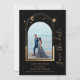 Mystical Black Guld Sol Måne Star Space Sparar datumet en svart bakgrund med ram från guld sol, måne och stjärnor. Inuti finns ditt favoritfoto och din anpassningsbar sparar datuminformationen. Lägg till ytterligare ett foto på motsatt sida. Anpassa genom att redigera texten i textrutorna. Designad för dig ©2022 Evco Studio www.zazzle.com/store/evcostudio