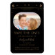 Mystical Black Guld Sol Måne Star Space Sparar datumet Magnet med guld sol, måne och stjärnor ram mot svart bakgrund. Inuti finns ditt favoritfoto och din anpassningsbar sparar datuminformationen. Anpassa genom att redigera texten i textrutorna. Designad för dig ©2022 Evco Studio www.zazzle.com/store/evcostudio