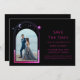 Mystical Black Lila Sol Måne Star Astronomy Celestial Cosmic Space Sparar datumet en rosa-lila färgad sol, måne och stjärnor ram på en elegant svart bakgrund. Inuti finns ditt favoritfoto och din anpassningsbar sparar datuminformationen. Anpassa genom att redigera texten i textrutorna. Designad för dig ©Evco Studio www.zazzle.com/store/evcostudio