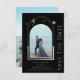 Mystical Black Silver Sol Måne Star Space Sparar datumet en svart bakgrund med ram från silver sol, måne och stjärnor. Inuti finns ditt favoritfoto och din anpassningsbar sparar datuminformationen. Lägg till ytterligare ett foto på motsatt sida. Anpassa genom att redigera texten i textrutorna. Designad för dig ©2022 Evco Studio www.zazzle.com/store/evcostudio