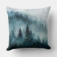 "cool tone palette, misty forest illustration, cozy accent pillow, enchanted blue theme",