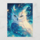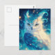 This ethereal postcard showcases a majestic owl with striking yellow eyes and luminous white and teal plumage. The artwork is rendered in a vibrant digital watercolor style, featuring deep cerulean and turquoise tones blended with brilliant golden highlights. Glowing light orbs and magical sparkles dance across the composition, creating a celestial, dreamlike vibe. Intricate feather details and elegant wisps of light give this bird a truly magical presence. This postcard is a perfect choice for sending a note of wonder, a celestial greeting, or a unique message to any owl lover.