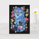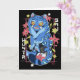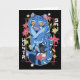 Mystical Blue Tiger Japanese Folk Art Style Kort
