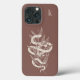En modern bohos-design i elegant i dramatiskt färg med en känslig hand plockade-serpent orm med celestial markering, som är sammanfogad runt en ritad botanisk löv illustration på en mörk terracotta-bakgrund. Anpassa med ett första monogram på den övre högerna.