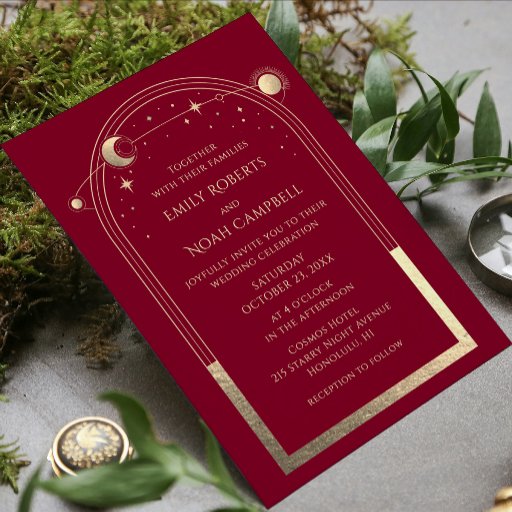 Mystical Burgundy Guld Celestial Möhippa Inbjudningar
