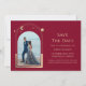 Mystical Burgundy Guld Sol Måne Star Space Astronomy Cosmic Galaxy Celestial Sparar datumet med guld sol, måne och stjärnor ram på en burgundisk bakgrund. Inuti finns ditt favoritfoto och din anpassningsbar sparar datuminformationen. Anpassa genom att redigera texten i textrutorna. Designad för dig ©Evco Studio www.zazzle.com/store/evcostudio