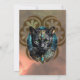 Mystical cat of Egypt, black as night, radiant as the sun. This black cat has striking, bright green eyes that immediately draw attention. The cat's head is set against a backdrop of stylized floral patterns in muted gold tones, creating a harmonious connection to ancient Egyptian aesthetics. The cat is adorned with elaborate Egyptian jewelry: gold necklaces, headbands, and earrings, decorated with turquoise stones that create a vibrant contrast with its black fur.
