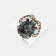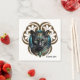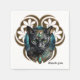 Mystical cat of Egypt, black as night, radiant as the sun. This black cat has striking, bright green eyes that immediately draw attention. The cat's head is set against a backdrop of stylized floral patterns in muted gold tones, creating a harmonious connection to ancient Egyptian aesthetics. The cat is adorned with elaborate Egyptian jewelry: gold necklaces, headbands, and earrings, decorated with turquoise stones that create a vibrant contrast with its black fur.