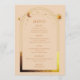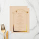 Celestial CHampagne Guld Sol Måne Stars Astronomi Galaxy Mystical Cosmic Space Bröllop Menu Cards har en gyllene sol, måne och stjärnor ram på en champagnebakgrund med dina menydetaljer i mitten i det moderna kalligrafiskript som visar guld. Anpassa genom att redigera texten i textrutorna. Designad för dig ©2024 Evco Studio på www.zazzle.com/store/evcostudio
