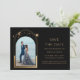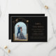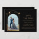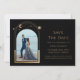 Mystical Chic Black Guld Måne Star Space Sparar datumet sol, Sol och stjärnor måne på en svart ram med guld färgad. Inuti finns ditt favoritfoto och din anpassningsbar sparar datuminformationen. Anpassa genom att redigera texten i textrutorna. Designad för dig ©Evco Studio www.zazzle.com/store/evcostudio