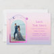 Mystical Chic Sunset Rosa Sol Måne Star Space Astronomy Cosmic Galaxy Celestial Sparar datumet rosa och lila sol, måne och stjärnor ram på en solnedgång i en pastellstrand. Inuti finns ditt favoritfoto och din anpassningsbar sparar datuminformationen. Anpassa genom att redigera texten i textrutorna. Designad för dig ©Evco Studio www.zazzle.com/store/evcostudio