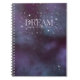 Anteckningsbok med inspirerande ord 'dröm, tänk dig, tro, skapa' i pastellviolett huvudstad brev mot en stjärnnatt himlar under dammiga violett och blå nebula i rymden. Mystisk och magisk som drömmarnas mystiska sfär. Använda textmallen om du vill lägga till ett namn, ge ord eller inspirerande citat. ♡ Idyllfire