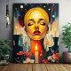Den här djärva teckningen visar en episk, mystisk scen av en kvinna i ansikte som belyses med varm ljus, med ett glödande måne som vilar på hennes pannan. Radianta linseffekter tillför en magisk känsla, medan känsliga blommor mjukar upp sammansättningen med skönhet och balans. Rik struktur och lysande detaljer ge i andlig i biet, eterisk närvaro, skapar det som en kraftfull brännpunkt för alla utrymmen.