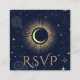 Kort för kelestial mystisk personlig QR-svarshölje för bröllop med galaxskt mjölkaktigt läge mitt i natten himlar med stjärndamm, krescerande måne och andra astrologiska symboler i marint blått och guldfärgat färg. Det här kortet är enkelt att redigera. Om du behöver hjälp med att anpassa det här kortet eller om du behöver fler matchande produkter för den här samlingen ska du vänligen meddela mig via Zazzle.