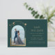 Mystical Grönt Guld Måne Sol Star Space Astronomy Cosmic Galaxy Celestial Sparar datumet guld sol, måne och stjärnor ram på grönt med bakgrund. Inuti finns ditt favoritfoto och din anpassningsbar sparar datuminformationen. Anpassa genom att redigera texten i textrutorna. Designad för dig ©Evco Studio www.zazzle.com/store/evcostudio