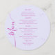 Menykort för Mystical Lavender Rosa Sol Stars Space Bröllop har enkla lila-stjärnor på en pastelllavender-bakgrund med dina menydetaljer i mitten i det moderna kalligrafiskriptet för rosa. Anpassa genom att redigera texten i textrutorna. Designad av Evco Studio www.zazzle.com/store/evcostudio