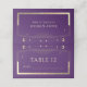 Mystical Lila Guld Måne Stars Astronomy Celestial Cosmic Space Bröllop Place Cards Escort har guld sol, måne och stjärnor Sol på ram. Lägg till bordsnumret på framsidan med namn på briden och trippen och bröllop på motsatt sida i modern manustypografi i guld. Designad för dig ©2022 Evco Studio. Visa www.zazzle.com/store/evcostudio för fler produkter i den här samlingen