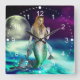 Mystical Mermaid Ocean Waves Moon Beach Fantasy Fyrkantig Klocka