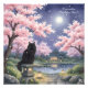 The deep indigo sky creates a dramatic contrast with the glowing pink Sakura petals falling like snow. This piece perfectly captures the "Zen" mystery of a moonlit spring night. It is a sophisticated choice for those who love mystical cat art, Japanese aesthetics, and calming home decor. A wonderful gift for black cat owners or anyone who finds peace in the magic of the night.