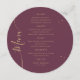 Menykort för Mystical Plum Guld Sol Stars Space Bröllop har enkla guld-stjärnor på plommonbakgrunden med menydetaljer i mitten i det moderna kalligrafiskriptet för guld. Anpassa genom att redigera texten i textrutorna. Designad av Evco Studio www.zazzle.com/store/evcostudio