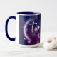 Start your mornings with a touch of deep cosmic magic and universal energy using this visually striking, oversized drinkware. This brilliant, large-capacity cup features a beautiful wrap-around print of a glowing crescent moon surrounded by vibrant purple nebula clouds and shining stars. The dreamy, starry night aesthetic is an inspiring way to enjoy your daily coffee, tea, or hot chocolate. The smartly integrated template space provides the perfect area to add a bold name, an inspiring astrology quote, or your zodiac sign to make it an exclusively personal item.