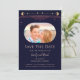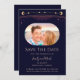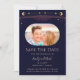 Mystical Rainbow Mörk Navy Blue Sol Måne Star Space Cosmic Celestial Astronomy Sparar datumet en regnbåge i färgad sol, måne och stjärnor i ram på en mörkens blå bakgrund. Inuti finns ditt favoritfoto och din anpassningsbar sparar datuminformationen. Anpassa genom att redigera texten i textrutorna. Designad för dig ©2024 Evco Studio www.zazzle.com/store/evcostudio
