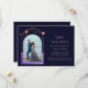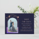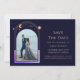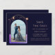 Mystical Rainbow Navy Blue Sol Måne Star Space Sparar datumet en regnbåge av färgad sol, måne och stjärnor ram på en marin blå bakgrund. Inuti finns ditt favoritfoto och din anpassningsbar sparar datuminformationen. Anpassa genom att redigera texten i textrutorna. Designad för dig ©Evco Studio www.zazzle.com/store/evcostudio
