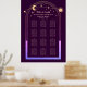 Mystical Lavender Rosa Sol Måne Stars astronomi Celestial Cosmic Galaxy Space Bröllop Seating Chart Poster Skriv ut med en regnbåge färgad sol, måne och stjärnor ram på en ogenomskinlig bakgrund. Inuti ram finns texten "Välkommen" i kalligrafiskriptet för elegant guld och informationen i personligt bröllp-kartan över mottagningssäten. Anpassa genom att redigera texten i textrutorna. Designad för dig ©2024 Evco Studio www.zazzle.com/store/evcostudio