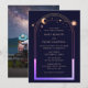Mystical Rainbow Sol Star Måne Astronomy Space Wedding inbjuds med sol, måne och stjärnor med en pastellregnbåge färgad ram på mörkens blå bakgrund. Inuti finns din inbjudan till personligt bröllp. Anpassa genom att redigera texten i textrutorna och lägga till ditt favoritfoto på motsatt sida. Designad för dig ©2024 Evco Studio www.zazzle.com/store/evcostudio