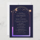 Mystical Rainbow Sol Star Måne Astronomy Space Wedding inbjuds med sol, måne och stjärnor med en pastellregnbåge färgad ram på mörkens blå bakgrund. Inuti finns din inbjudan till personligt bröllp. Anpassa genom att redigera texten i textrutorna. Designad för dig ©Evco Studio www.zazzle.com/store/evcostudio
