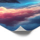 The surreal setting portrays a floating rock anchored in luminous skies, pouring a cascading waterfall into layers of pastel clouds below. Shades of lavender, aqua, and golden light merge seamlessly to create an ethereal palette that soothes the senses while captivating the viewer’s attention. This conceptual design symbolizes harmony, flow, and boundless inspiration, making it ideal for spaces that value sophistication and originality.