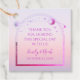 Mystical Sunset Rosa Sol Måne Stars Astronomy Celestial Cosmic Galaxy Space Wedding Favor-Märkre har en rosa och lila sol, måne och stjärnor ram på en solnedgång i en pastellstrand. Personlig med ett "Tack"-meddelande. Perfekt för bröllop och party favors. Anpassa genom att redigera texten i textrutorna. Designad för dig ©2022 Evco Studio www.zazzle.com/store/evcostudio